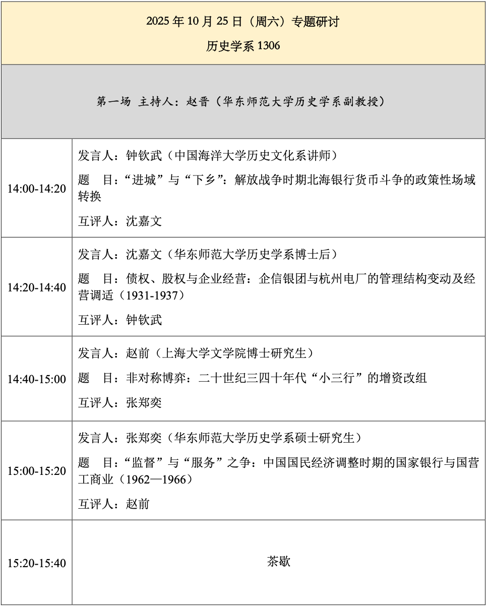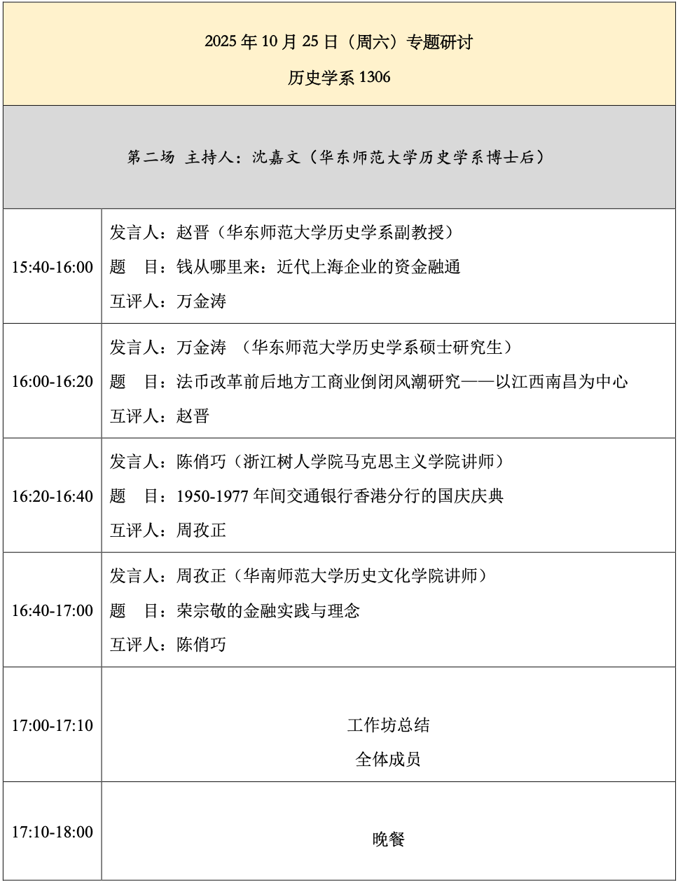 第二届“银行史研究与教学”工作坊议程|国家、社会与人:历史变迁中的近代中国银行业