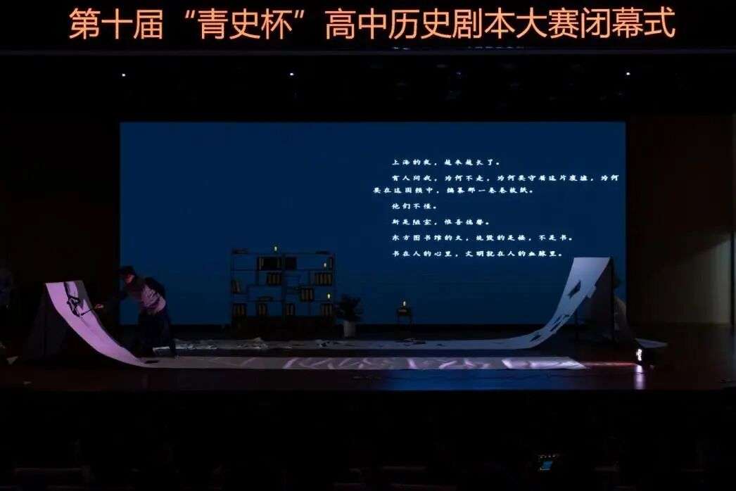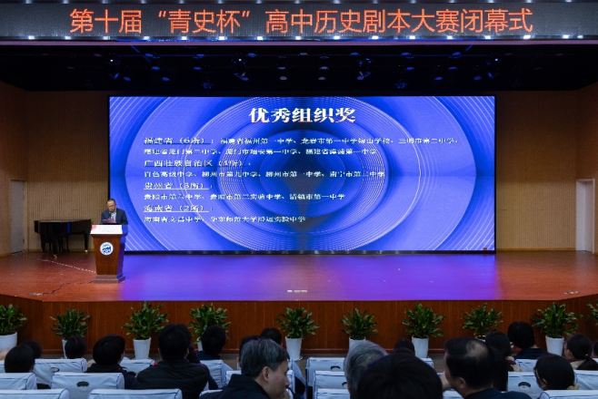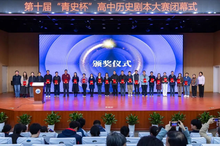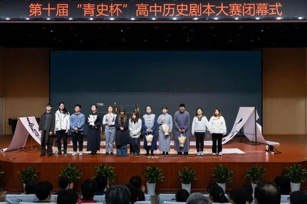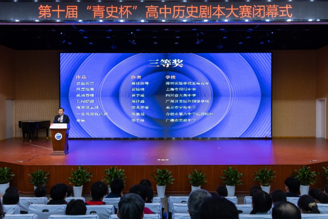 12月3日下午,由华东师范大学教育集团、历史学系等单位主办的第十届“青史杯”高中生历史剧本大赛闭幕式在上海市闵行中学举行,华东师范大学青年史学社第九届“镜•相”历史剧同期演出。我校党委副书记孟钟捷到会致辞,我系党委书记瞿骏应邀致辞,系党委副书记王应宪、副系主任朱明、王进锋,《历史教学问题》副主编李月琴、大中小学历史教育研究与实践基地负责人黄爱梅、历史教育教研室主任徐继玲应邀出席,青年史学社指导教师蔡慧贤、社长刘传博带队演出,我系六十余名同学现场观摩学习。