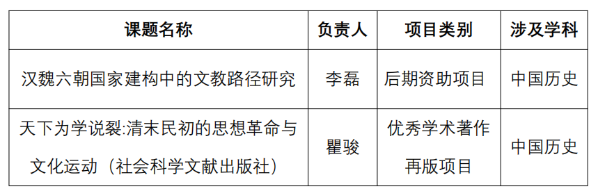 历史学系2025年国家社会科学基金后期资助暨优秀学术著作再版项目立项名单(以全国社科办公布名单为序)